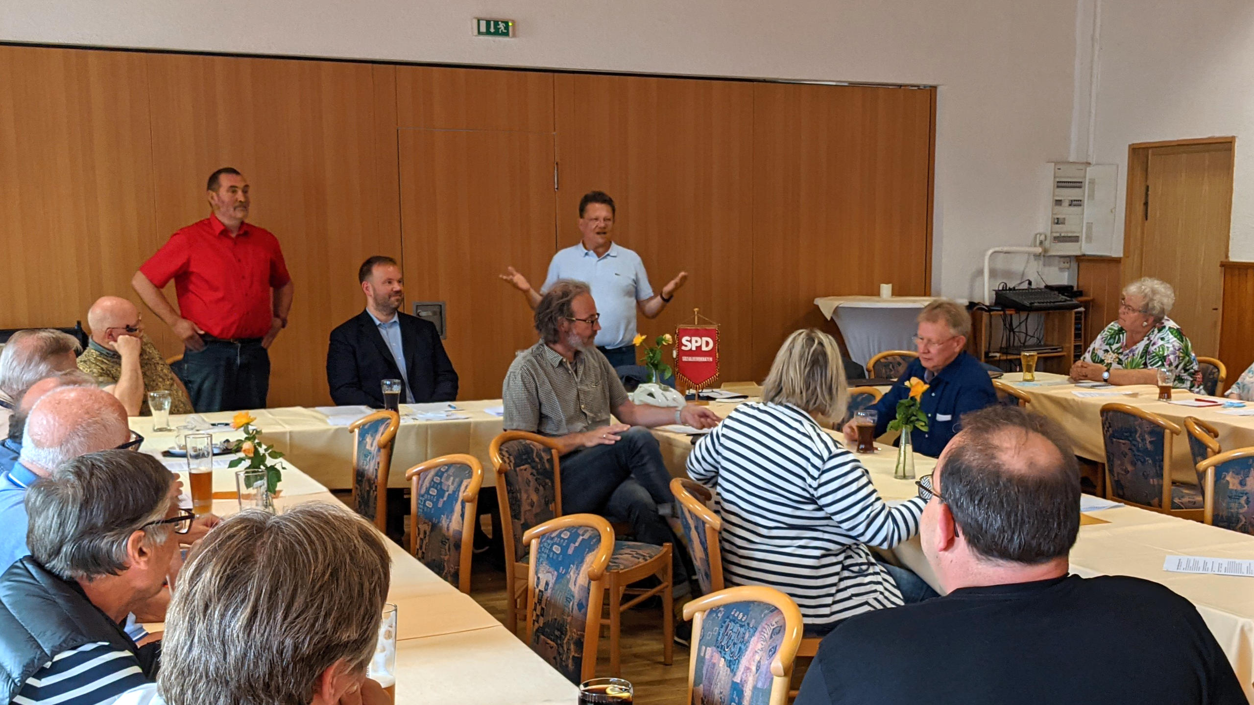 Vor diesem Hintergrund ergriff abschließend Dr. Thomas Gans das Wort und appellierte an die Versammlung erhobenen Hauptes in den Wahlkampf zu ziehen: „Wir sollten uns nicht verstecken, denn wir sind Mitglieder der ältesten Partei Deutschlands. Ohne die SPD gäbe es die Bundesrepublik gar nicht. Zumindest nicht in dieser Form. Das dürfen wir nicht vergessen!“, leitete der Bürgermeisterkandidat sein Schlusswort ein, „Uns gibt es trotz zwei Weltkriegen und trotz der mörderischen Verfolgung durch die Nazis. Wer, wenn nicht wir, steht für sozialdemokratische Werte ein? Für Menschlichkeit, Gerechtigkeit und Solidarität? Dafür machen wir gemeinsam Wahlkampf. Im Großen, wie bei Andreas Philippi, aber eben auch im Kleinen hier bei uns für unseren Stadtrat, unsere Ortsräte und auch für unser Bürgermeisteramt“, zeigte sich Gans entschlossen.